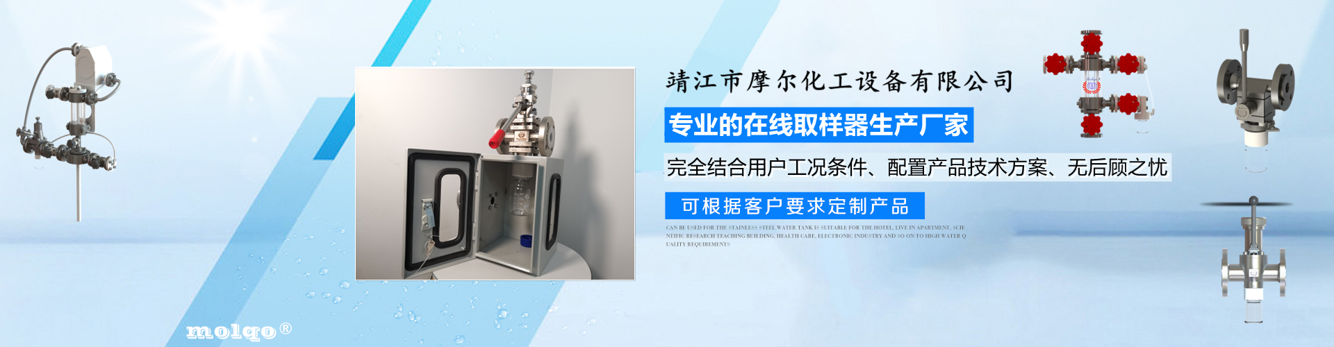 靖江市摩爾化工設備有限公司位于蘇中明珠——江蘇省靖江市城南工業園區東進路北側天元艾爾瑞內,另有生產基地位于靖江市經濟技術開發區新號路1號鼎電科技園內。我公司由數名長期從事化工生產、氟塑襯里模具開發以及機械自控設備的專業人員共同合作成立,致力于提供客戶最優的高效在線取樣、反應及精餾分離設備,為客戶提供合理的設備選型方案,以幫助客戶提高綜合生產效率以及改善生產現場環境為目標。 本公司主要制造及銷售的產品有:釜用在線取樣裝置,管道取樣閥,釜用清洗噴淋裝置、搪玻璃設備、GMP專用搪玻璃設備、氟塑襯里設備、攪拌器、釜用機械密封、氣動閥門及搪玻璃管道、襯氟閥門管道、非標不銹鋼容器,精餾塔塔器、片式冷凝器及PTFE密封件、鋯、鈦、鉭、鎳等加工件制品。我司是一家集研發銷售、設計咨詢服務于一體的專業···| 宁阳县 | 灌南县 | 凌海市 | 新沂市 | 龙海市 | 曲靖市 |